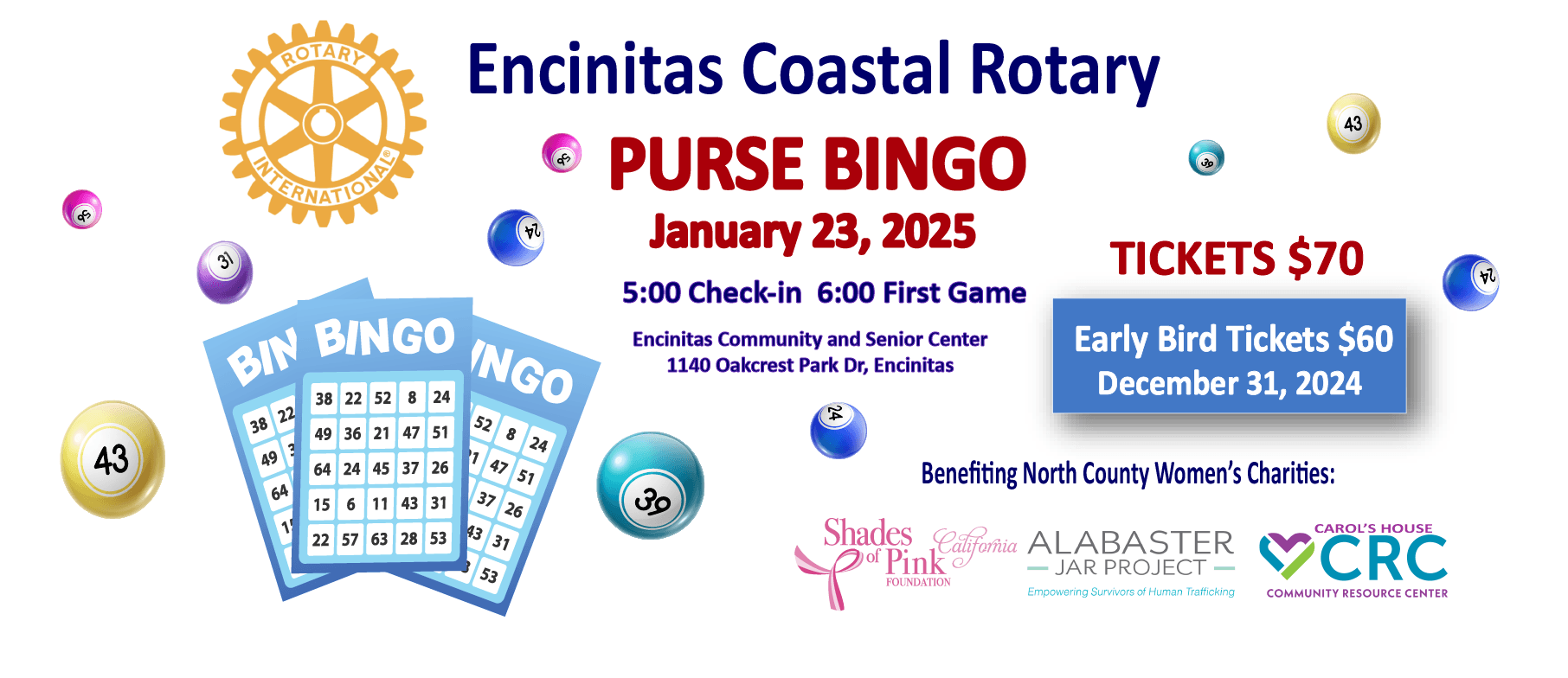 With your ticket, you'll receive 8 bingo games and one Drink Ticket and enjoy a Light Dinner—including delicious pizza, fresh salads, and tasty desserts.